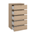Kommoden er fremstillet i materialer med en slidstærk og rengøringsvenlig overflade, der gør den modstandsdygtig over for hverdagens brug. De 5 rummelige skuffer giver rigeligt med plads til tøj, sengetøj eller andre ejendele, så du nemt kan holde dit hjem organiseret.