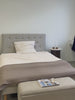 Denne smukke sengegavl i beige tekstil tilføjer et elegant og tidløst touch til dit soveværelse. Med sine delikate tuftede detaljer skaber den et sofistikeret look, der passer perfekt til både moderne og klassiske indretningsstile.