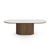 Bobby - Oval sofabord med lys beige stenbordplade og fod i røget eg 120x55x45 cm