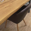 Dens bløde brune tekstil og metalben i egelook skaber en indbydende atmosfære. Den strukturerede polstring sikrer komfort. Fra middage med familie og venner til stille øjeblikke alene, tilbyder denne stol enestående komfort og funktionalitet. Den varme brune farve og det simple, moderne udtryk gør stolen perfekt til enhver indretning.