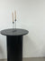 Et stilrent barbord med rund bordplade og markant søjlefod med lodrette lameller. Den dybsorte overflade skaber en flot kontrast til lyse omgivelser og tilføjer kant til indretningen.
