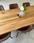 De knaster og revner, der naturligt kan være i et plankebord, har vi valgt at få udfyldt under fremstillingen, så bordpladen bliver mere glat og jævn