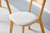 Sædet er polstret med et blødt beige materiale, som giver ekstra komfort og gør stolen ideel til lange middage eller hyggelige stunder omkring bordet.