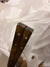 Sædet er polstret med et blødt beige materiale, som giver ekstra komfort og gør stolen ideel til lange middage eller hyggelige stunder omkring bordet.